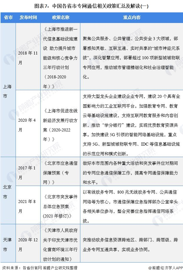 原标题:重磅!2021年中国及31省市专网通信行业政策汇总及解读(全) 来源:前瞻产业研究院