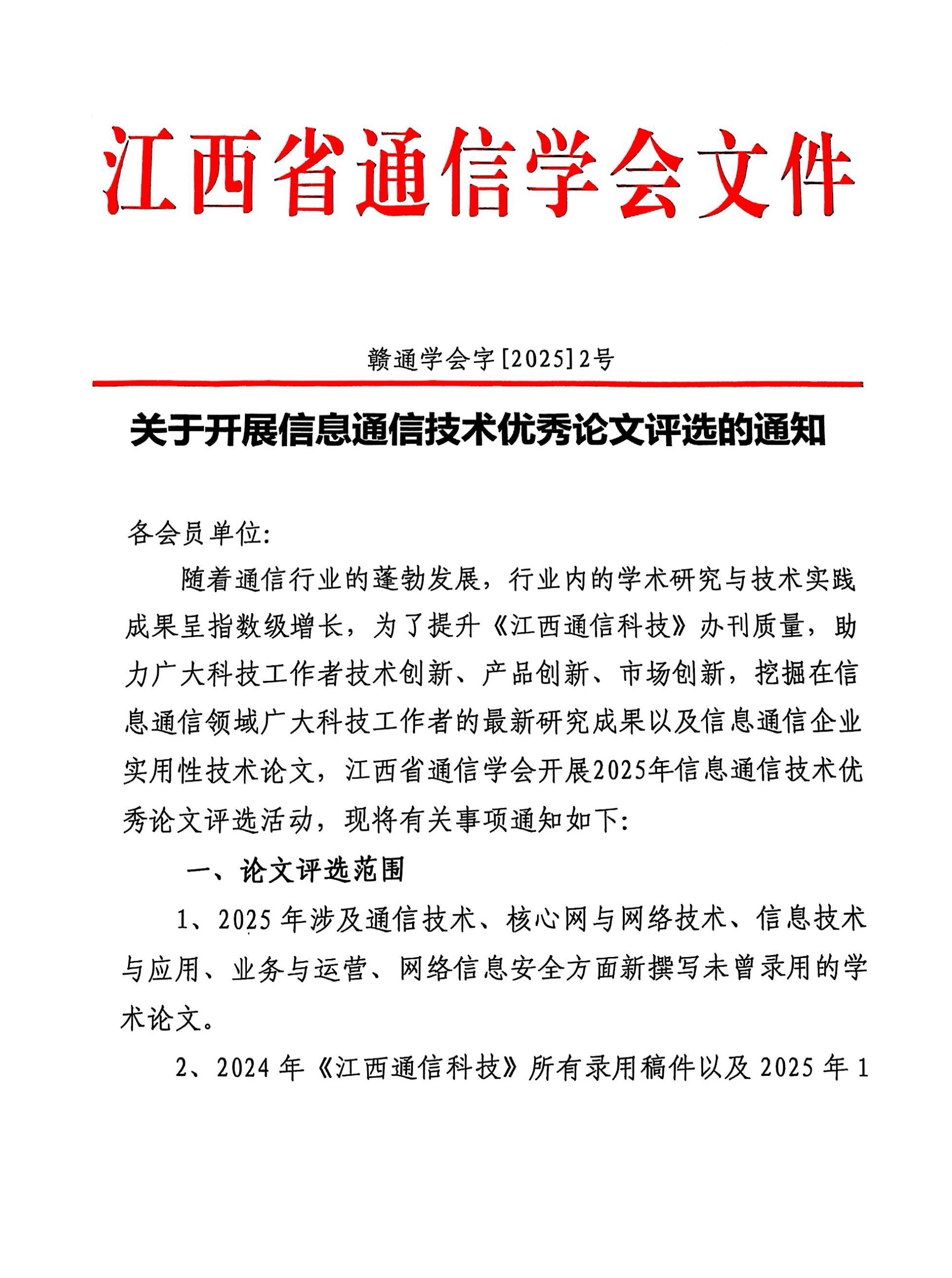 江西省通信学会2024年度、2025年度赣鄱俊才支持计划·青年科技人才托举项目推荐结果公示