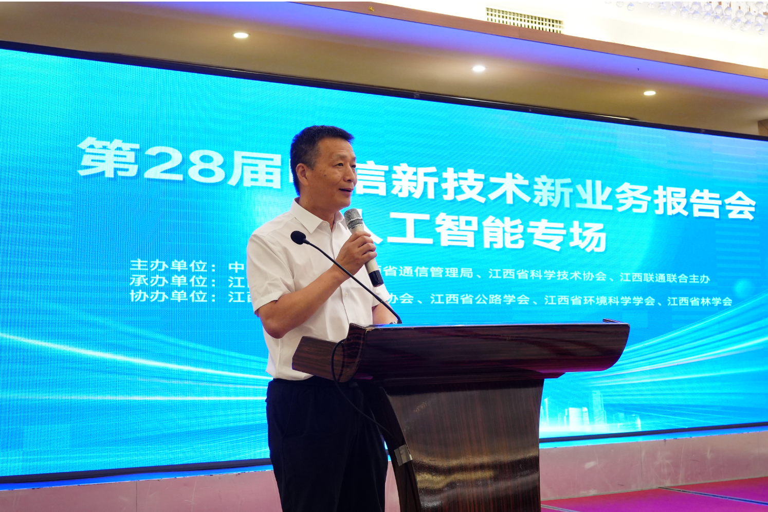 2023年7月14日,由中国通信学会、江西省通信管理局、江西省科学技术协会、江西联通联合主办,江西省通信学会承办的“第二十八届电信新技术新业务报告会——人工智能专场”在江西省南昌市召开。原江西省委常委、统战部部长蔡晓明、省人大常委李江河、省通信管理局局长郑蕾、省科协党组书记曾萍、原省通信管理局局长黄建新、省委原副秘书长钟金根、省科协党组成员、副主席章新建等出席会议,报告会由中国通信学会常务理事、江西省通信学会理事长孙兵主持。