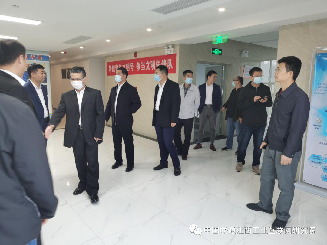 最后,谢副局长一行对研究院各项工作给予了高度肯定,明确表示将加大扶持力度推动项目落地,全力支持联通承建江西省工业互联网标识解析二级节点,并提出研究院应加大宣传力度,招牌打出去,项目引进来,积极打造江西工业互联网特色名片。