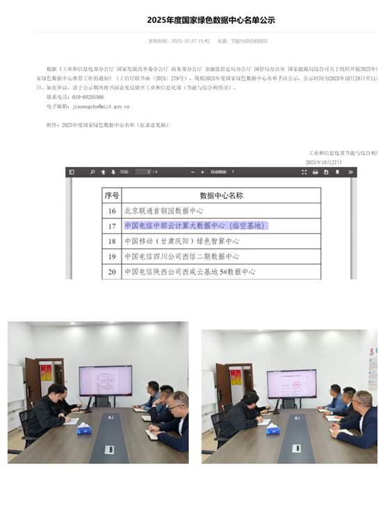 荣誉传来后,党员团队也并未停下脚步。复盘会上,大家明确将继续以“专业、高效、共赢”为行动指引,持续发挥党员先锋模范作用。同时此次“全省唯一”的荣誉,不仅是该数据中心绿色发展实力的集中彰显,更是党员攻坚团队助力数字基础设施绿色转型、服务国家“双碳”战略的有力见证。