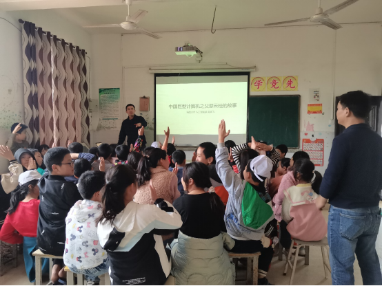 讲座二是由南昌大学人工智能系吴武飞老师进行授课的,吴老师给学生分享了计算机之父慈云桂的故事,介绍计算机的组成部分、什么是超级计算机以及计算机的发展历程。通过观察、互动、交流学习的过程,激发孩子们的科学兴趣!